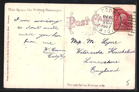 alte Ansichtskarte, gelaufen 1907, Stempelspur, Eckknick unten li., guter Zustand