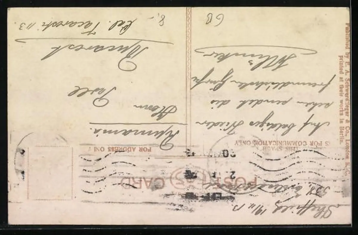 alte Ansichtskarte, gelaufen, Briefmarke entfernt, guter Zustand