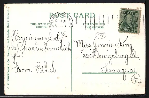 alte Ansichtskarte, gelaufen 1907, Stecknadellöcher re. und li. oben, guter Zustand
