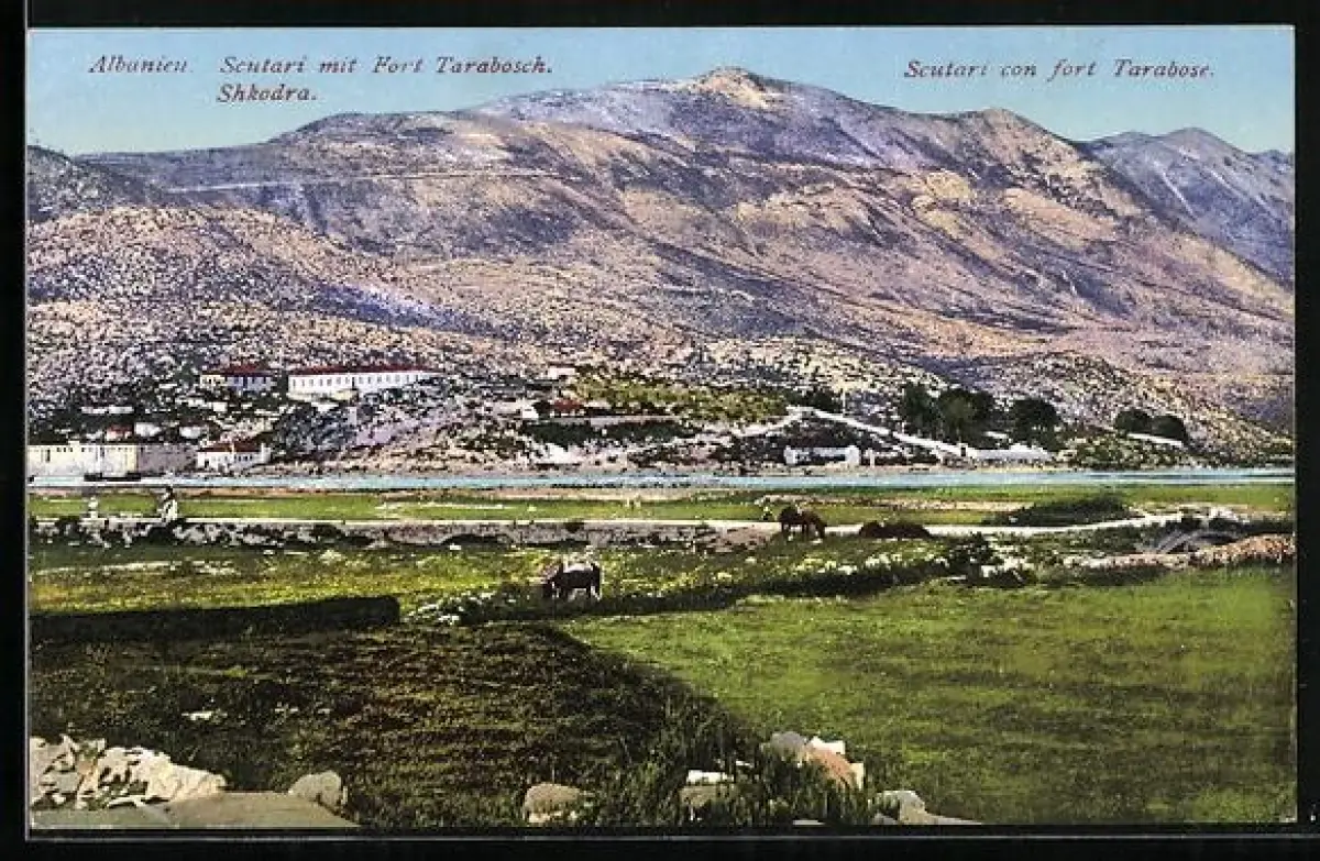 AK Shkodra, Ortsansicht mit Fort Tarabosch