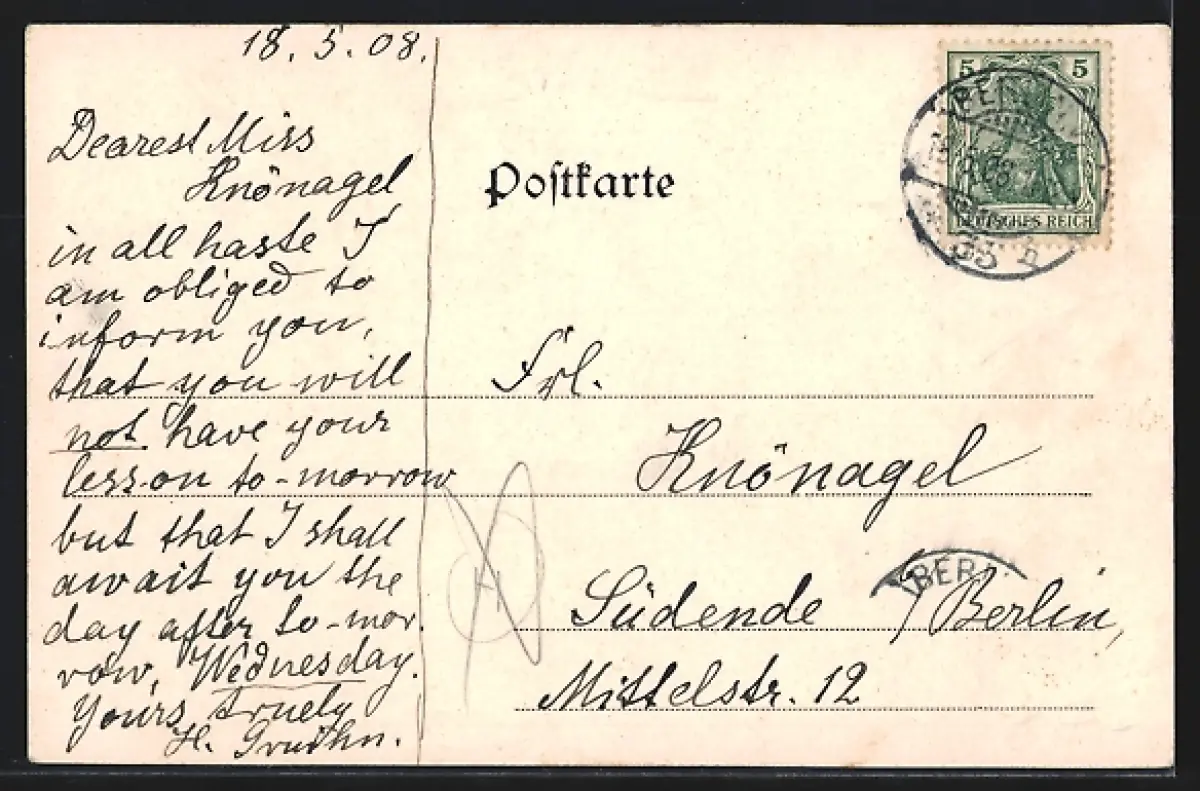 alte Ansichtskarte, gelaufen 1908, guter Zustand