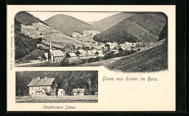 AK Sieber im Harz, Ortsansicht mit Oberförsterei Sieber