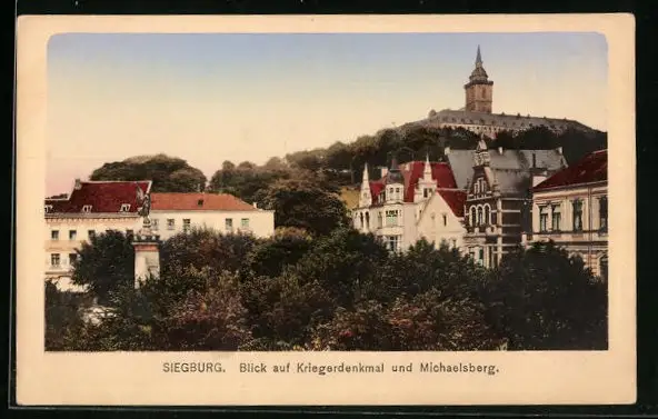 AK Siegburg, Blick auf Kriegerdenkmal und Michaelsberg