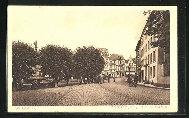AK Siegburg, Blick auf Marktplatz mit Denkmal