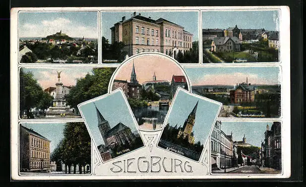 AK Siegburg, Denkmal, Lehrer-Seminar, Gefängnis, Feuerwerks-Laboratorium, Mühlengraben und Kirchen
