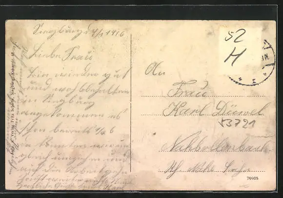 alte Ansichtskarte, gelaufen 1916, Briefmarke entfernt, guter Zustand