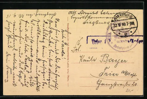 alte Ansichtskarte, gelaufen 1918, guter Zustand
