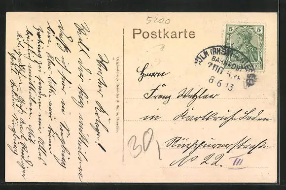 alte Ansichtskarte, gelaufen 1913, Stempelspur, guter Zustand