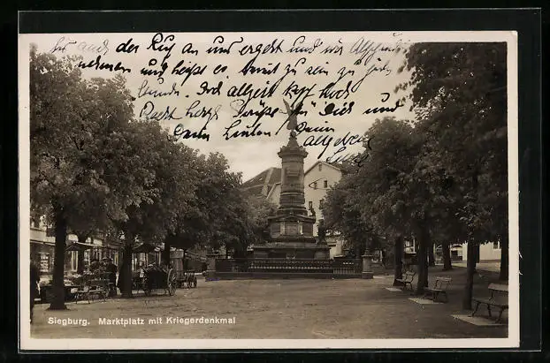 AK Siegburg, Marktplatz mit Kriegerdenkmal