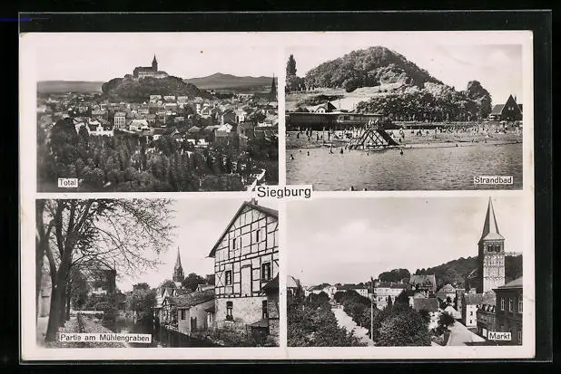 AK Siegburg, Mühlengraben, Markt, Strandbad