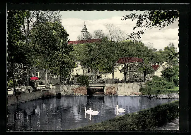 AK Siegburg, Partie am Schwanenteich, Schwäne