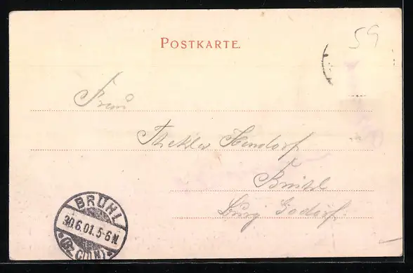 alte Ansichtskarte, gelaufen 1901, Briefmarke entfernt, guter Zustand