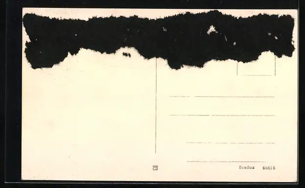 Personenbezogene Daten auf der Rückseite der Karte wurden durch blauen Textmarker unkenntlich gemacht. Die blauen Stellen sind auf die Vorderseite durchgeweicht und wirken sich negativ auf das Postkartenfoto aus