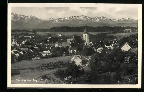 AK Sierning bei Steyr, Ortspartie mit Kirche