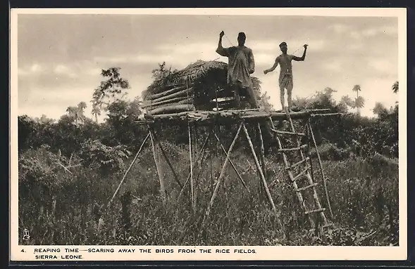 AK Sierra Leone, Reaping time, scaring away the birds from the rice fields