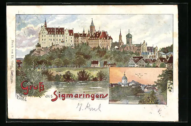 AK Sigmaringen, Ortsansicht mit Kirchturm