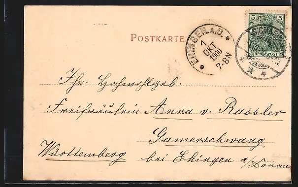 alte Ansichtskarte, gelaufen 1900, guter Zustand