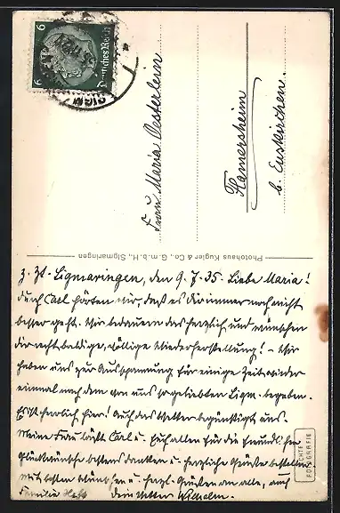 alte Ansichtskarte, gelaufen 1935, Eckknicke re., guter Zustand