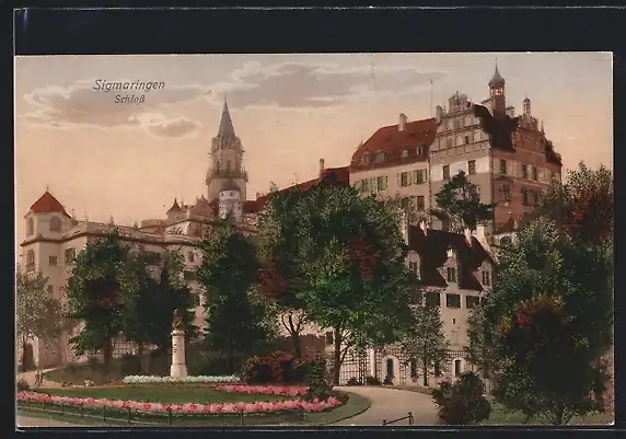 AK Sigmaringen, Schloss mit Park und Denkmal