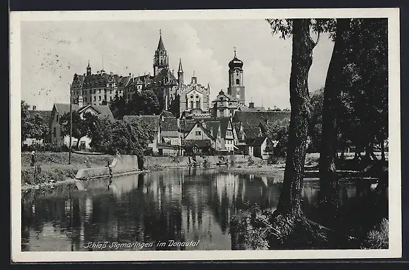 AK Sigmaringen, Schloss vom Donauufer gesehen