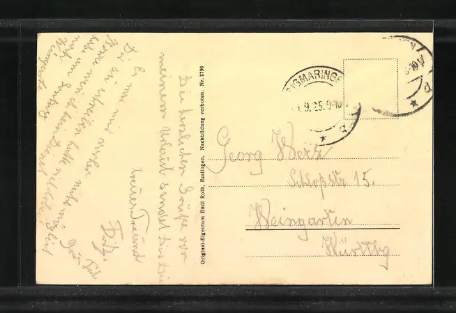 alte Ansichtskarte, gelaufen 1925, Briefmarke entfernt, Stempelspur, guter Zustand