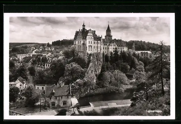 AK Sigmaringen, Teilansicht mit Burgberg