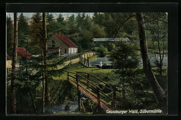 AK Silbermühle im Teutoburger Wald, Kind neben einem Boot an der Mühle