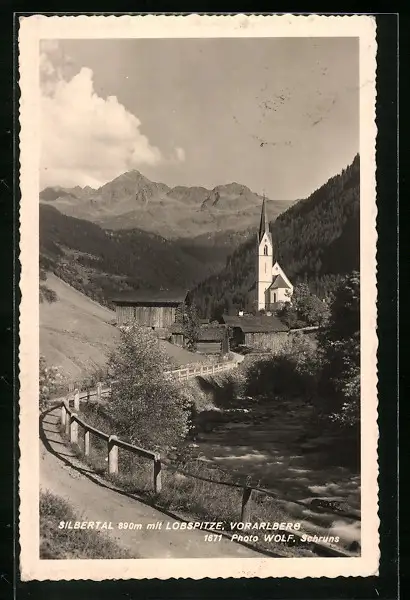 AK Silbertal, Strassenpartie zur Kirche hin mit Lobspitze