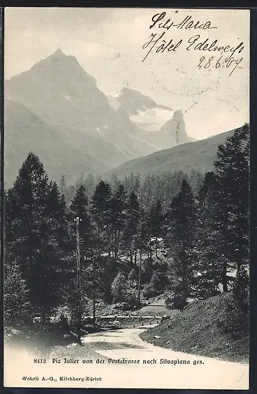 AK Silvaplana, Piz Julier von der Poststrasse gesehen