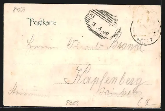 alte Ansichtskarte, gelaufen 1908, Briefmarke entfernt, rückseitig Oberflächenschaden, Eckknick li. oben, guter Zustand