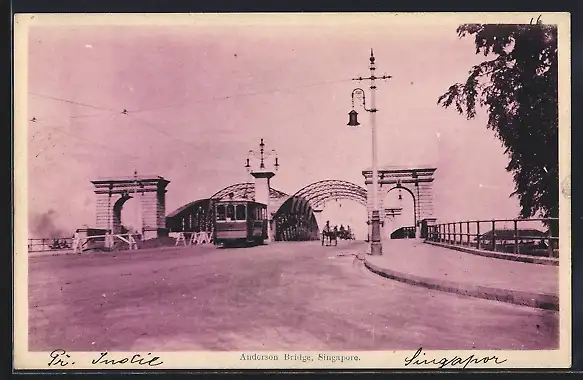 AK Singapore, Anderson Bridge mit Strassenbahn