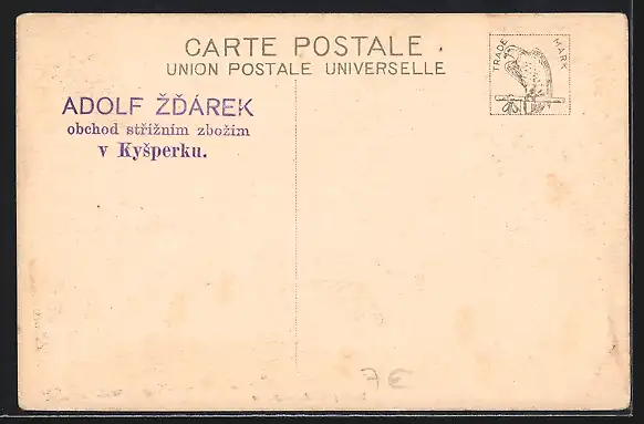 Personenbezogene Daten auf der Rückseite der Karte wurden durch blauen Textmarker unkenntlich gemacht. Die blauen Stellen sind auf die Vorderseite durchgeweicht und wirken sich negativ auf das Postkartenfoto aus