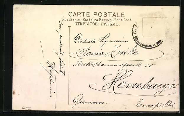 alte Ansichtskarte, gelaufen, Briefmarke entfernt, guter Zustand