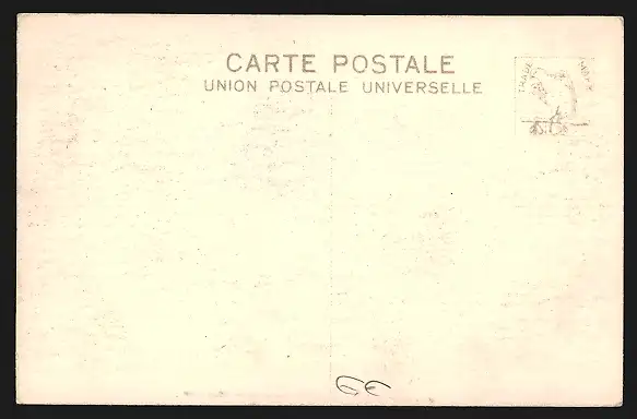 Personenbezogene Daten auf der Rückseite der Karte wurden durch blauen Textmarker unkenntlich gemacht. Die blauen Stellen sind auf die Vorderseite durchgeweicht und wirken sich negativ auf das Postkartenfoto aus