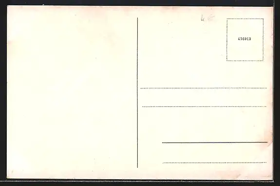 Personenbezogene Daten auf der Rückseite der Karte wurden durch blauen Textmarker unkenntlich gemacht. Die blauen Stellen sind auf die Vorderseite durchgeweicht und wirken sich negativ auf das Postkartenfoto aus