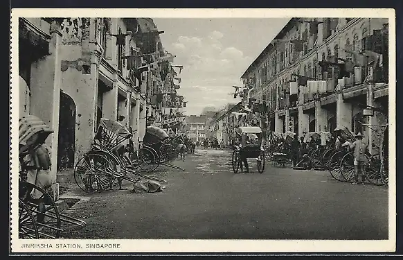 AK Singapore, Jinriksha Station, Strassenpartie mit Rikschas
