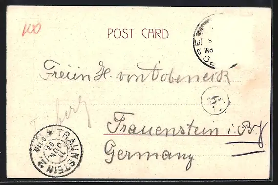 gelaufen 1903, Briefmarke entfernt, rückseitig Oberflächenschaden, guter Zustand
