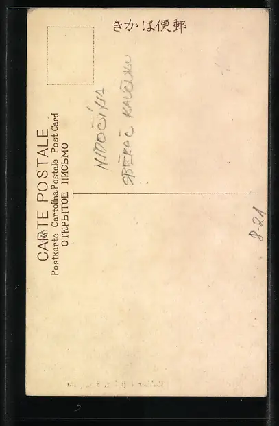 Personenbezogene Daten auf der Rückseite der Karte wurden durch blauen Textmarker unkenntlich gemacht. Die blauen Stellen sind auf die Vorderseite durchgeweicht und wirken sich negativ auf das Postkartenfoto aus