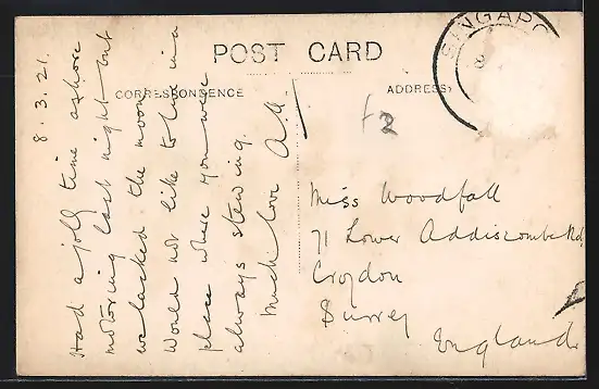 alte Ansichtskarte, gelaufen 1921, Briefmarke entfernt, rückseitig Oberflächenschaden, guter Zustand
