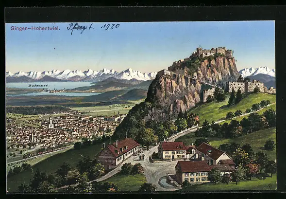 AK Singen-Hohentwiel, Teilansicht aus der Vogelschau