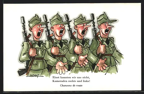 AK Singende schweizer Soldaten in Uniform mit Gewehr