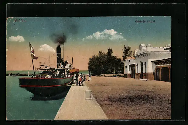 AK Siofok, Gözhajó kikötö, Dampfer am Anleger