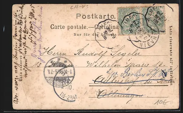 alte Ansichtskarte, gelaufen 1905, Eckknick unten re., guter Zustand