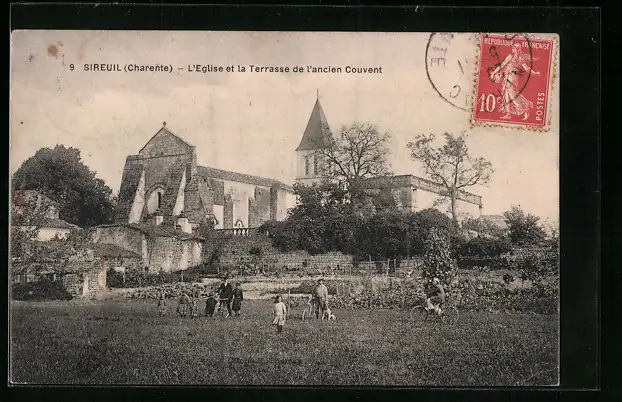 AK Sireuil, Charente, L`Eglise et la Terrasse de l`ancien Couvent