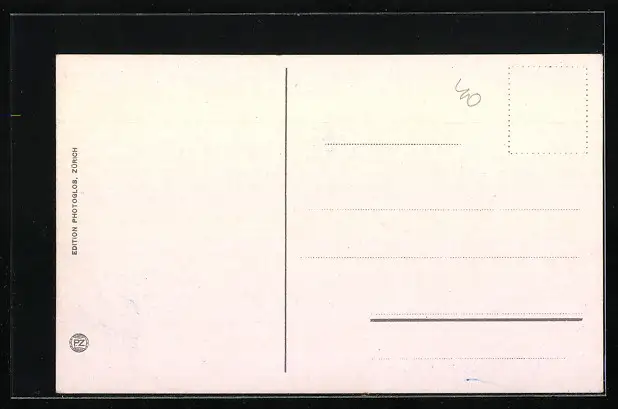 Personenbezogene Daten auf der Rückseite der Karte wurden durch blauen Textmarker unkenntlich gemacht. Die blauen Stellen sind auf die Vorderseite durchgeweicht und wirken sich negativ auf das Postkartenfoto aus