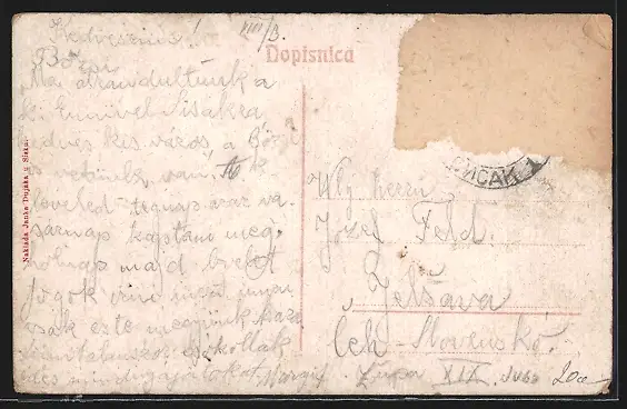 gelaufen, Briefmarke entfernt, rückseitig Oberflächenschaden, Ecken bestoßen, guter Zustand