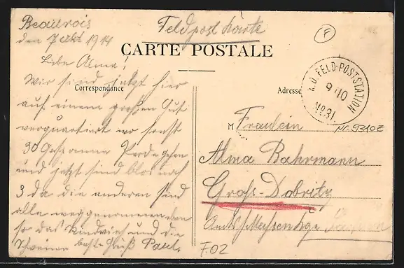 alte Ansichtskarte, gelaufen 1914, guter Zustand