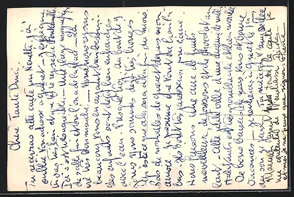 Personenbezogene Daten auf der Rückseite der Karte wurden durch blauen Textmarker unkenntlich gemacht. Die blauen Stellen sind auf die Vorderseite durchgeweicht und wirken sich negativ auf das Postkartenfoto aus
