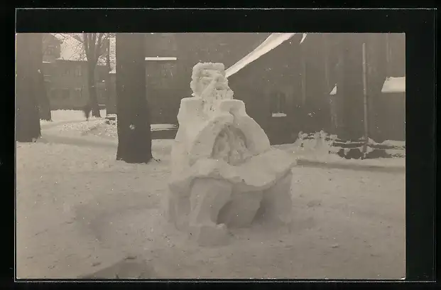 AK Sitzender Mann mit Vollbart, Eisplastik