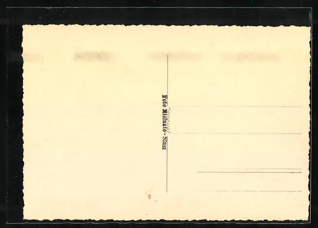 Personenbezogene Daten auf der Rückseite der Karte wurden durch blauen Textmarker unkenntlich gemacht. Die blauen Stellen sind auf die Vorderseite durchgeweicht und wirken sich negativ auf das Postkartenfoto aus
